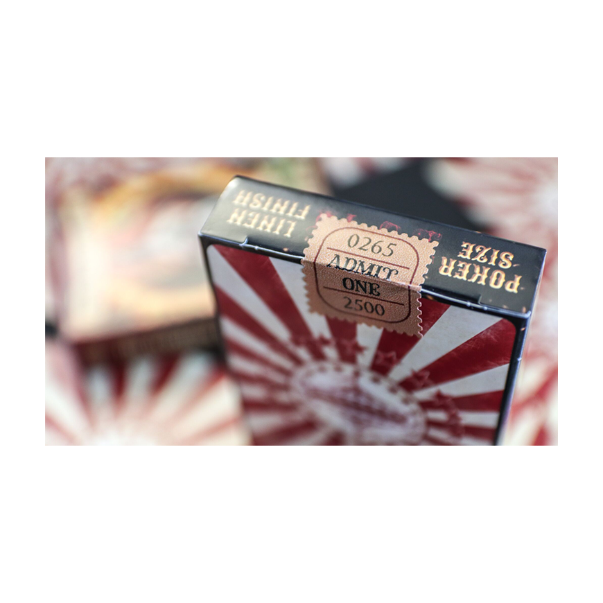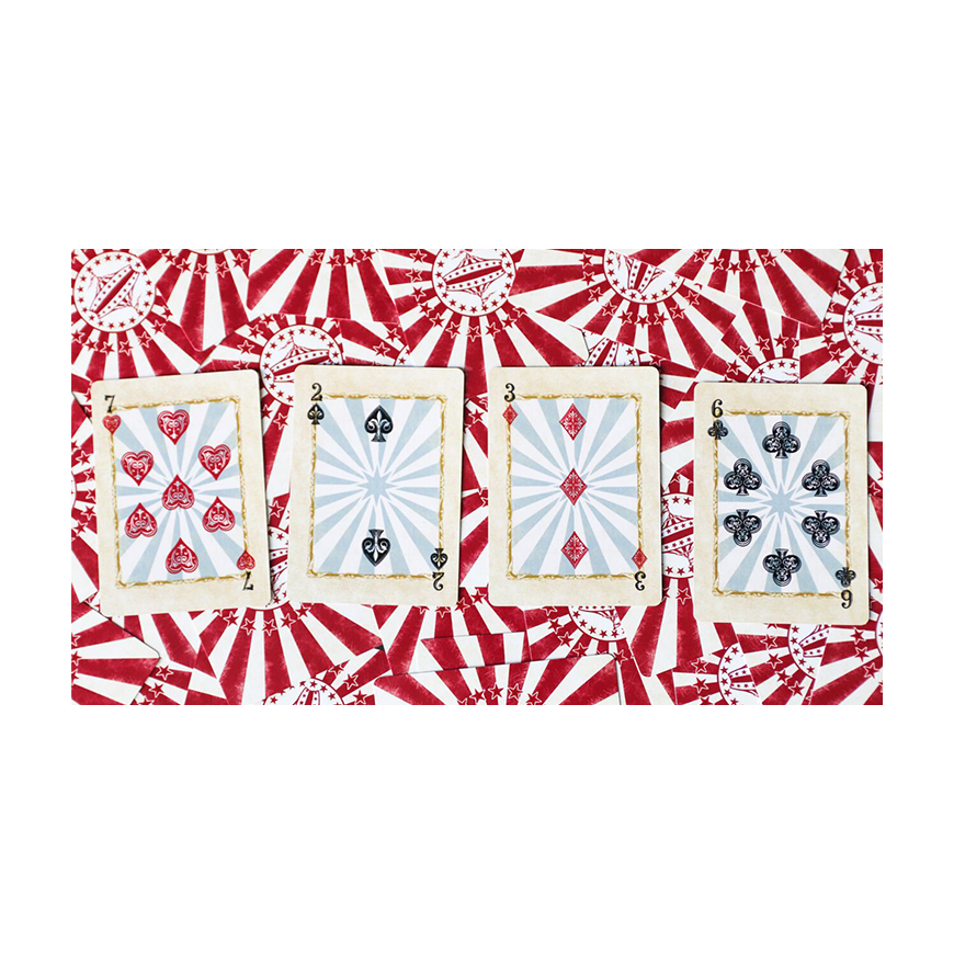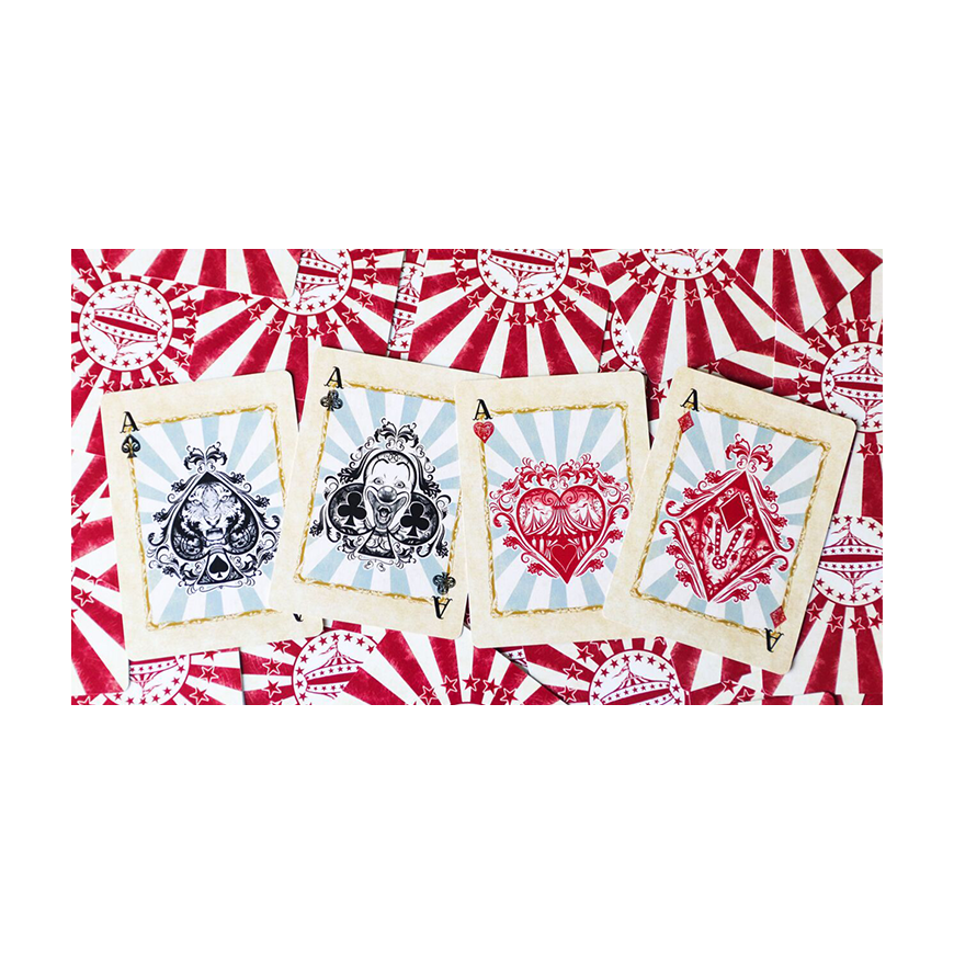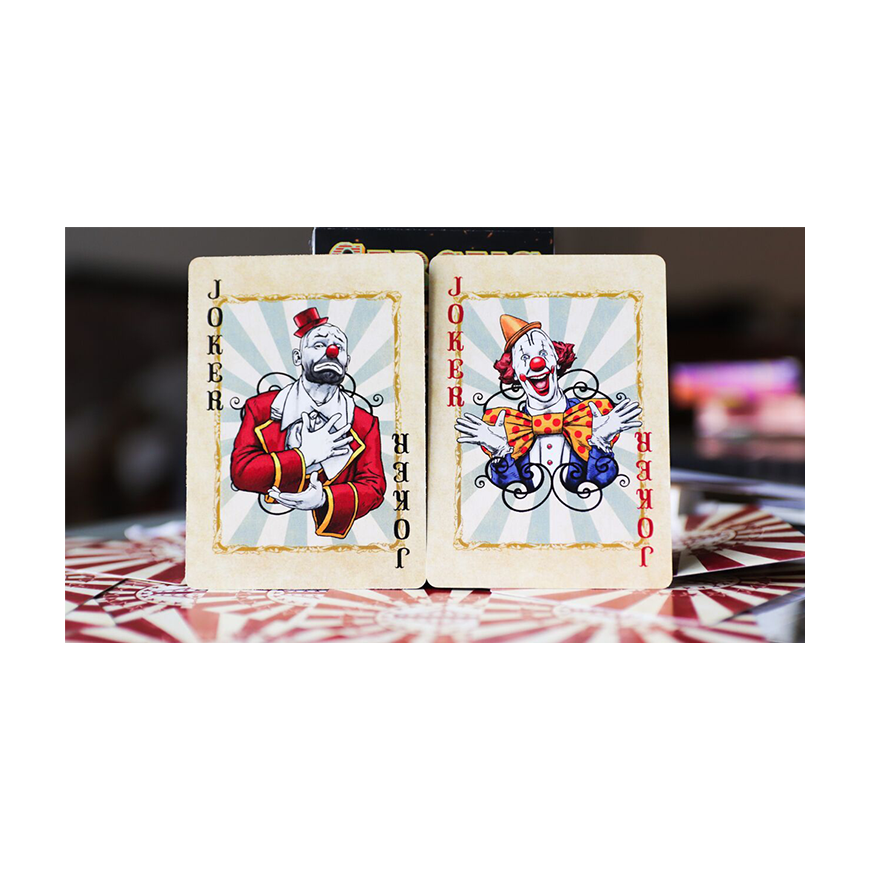 Le CIRCUS arrive ... Revivez les souvenirs d'enfance de fréquenter le cirque quand vous étiez enfant. Les vues, les odeurs, l'excitation! Nous avons essayé de mettre tout cela dans ce jeu polyvalent, adapté à tous vos besoins en matière de cartes à jouer. Une conception spéciale à fond perdu pour le cardiste. Cartes Gimmick supplémentaires pour le magicien. Facile à lire pour le poker ou votre jeu de cartes préféré. Et c'est un tirage limité et ponctuel qui convient au collectionneur perspicace.