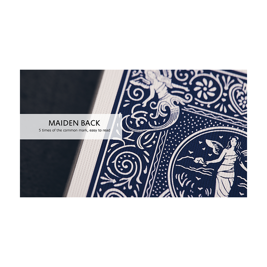 Voici un jeu brillant et marqué utilisant le Bicycle Maiden Back, qui est très classique et commun aux cartes. Il est fabriqué et imprimé par USPCC et utilise le papier classique Bicycle.