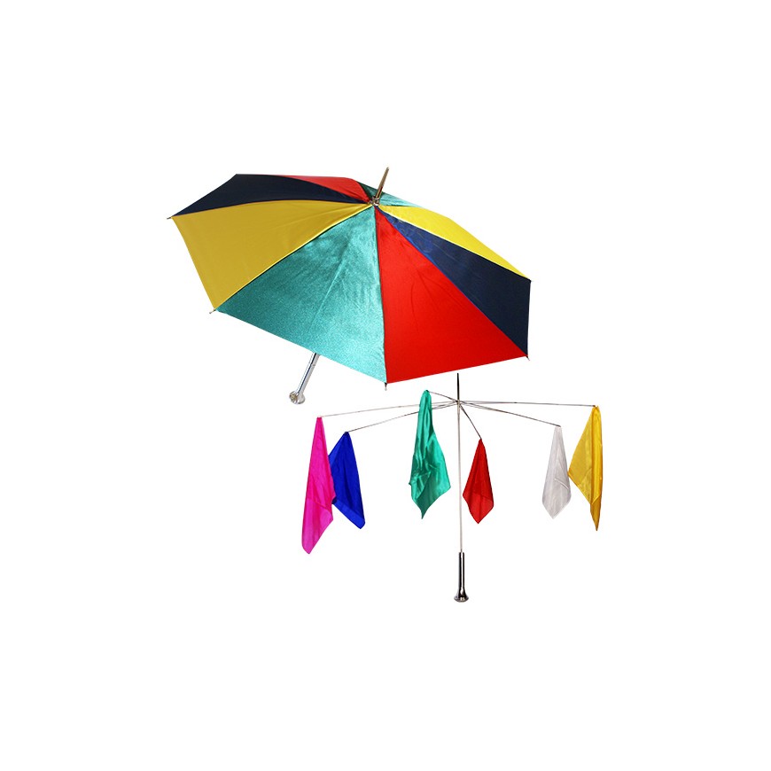 Le magicien montre aux spectateurs un magnifique parasol multicolore. Il l'ouvre et le ferme plusieurs fois et l'enveloppe soigneusement dans une feuille de papier journal en laissant son bout et son manche bien en vue. Il le pose ensuite sur la table. Maintenant, il montre des soies colorées et les place, une à la fois, dans un sac précédemment montré vide. Après un geste magique, il déchire le sac en projetant son contenu dans les airs. Au lieu des soies, il y aura maintenant la couverture du parasol! Pour finir, le magicien sort le parasol du journal et l'ouvrir montre que la couverture a complètement disparu et que chacune des nervures des parasols comporte des soies colorées! • Il s’agit d’un article Sitta d’origine et sa qualité est excellente. • Tout le nécessaire est fourni. Et les soies sont naturellement 100% soies pures. • Le parasol de 81 cm de long est fourni dans un tube en plastique transparent élégant et pratique (idéal pour le transport).