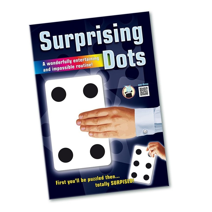 L’artiste montre une carte jumbo comportant 1 point noir d’un côté et 4 points noirs de l’autre. Étrangement, lorsque la carte est à nouveau affichée, elle comporte 3 points d’un côté et 6 de l’autre. La carte est affichée quelques fois de plus et chaque fois le nombre de points sur ses côtés change. À la fin, le magicien explique au public comment fonctionne le tour, mais comme surprise, 8 points noirs apparaissent soudainement de nulle part et remplissent complètement la carte! • Grâce aux photos claires des instructions, l’astuce est très facile à apprendre. • La carte mesure 24 x 16 cm et les points ont un diamètre de 3,7. L'effet est par conséquent bien visible même à distance.