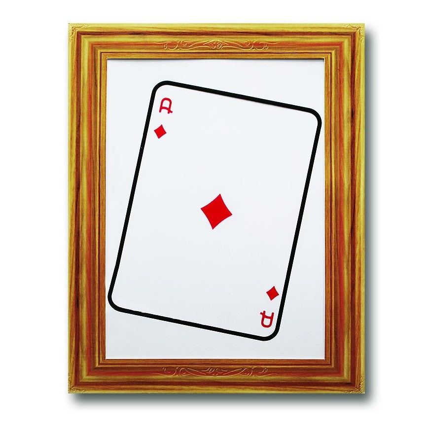 Une carte est sélectionnée (reine des carreaux), notée et rendue au jeu. Le magicien montre alors un As de carreau de taille géante à l'intérieur d'un cadre et prétend qu'il s'agit de la carte sélectionnée. Le spectateur lui dit que non. Ensuite, l'as de carreauxt est retiré du cadre. !L'as de carreau se change visiblement dans la carte sélectionnée! • Le jeu de cartes n'est pas inclus. • La transformation de la carte est complètement automatique. • Très facile à faire et adapté à tout type de performance. • Le grand cadre est en carton et mesure 26 x 20,5 cm (10,23 x 8,07).