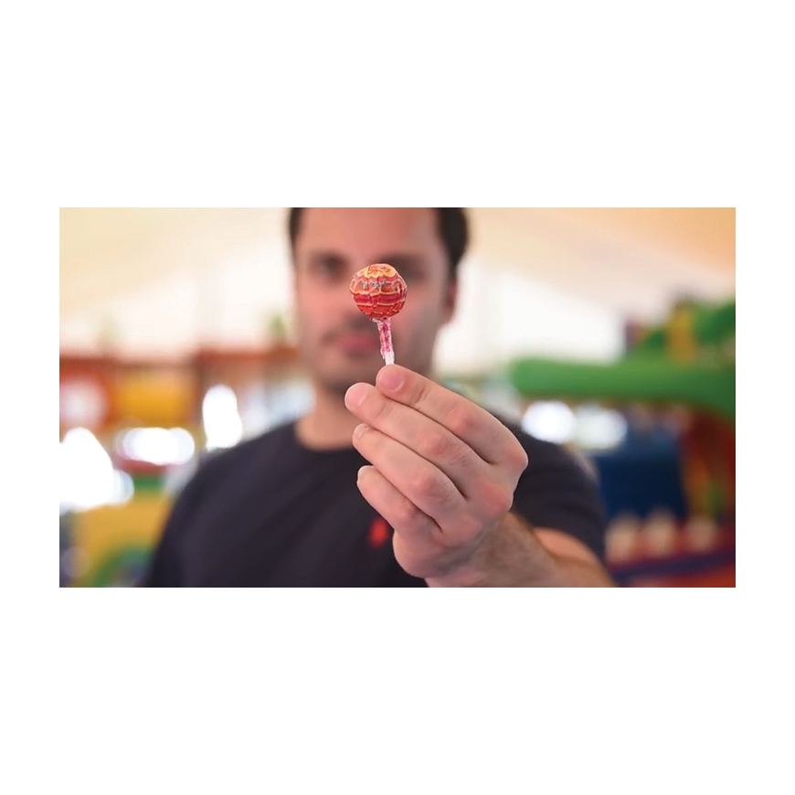 Le magicien explique qu'il va montrer comment sont fabriquées les sucettes. Il prend une bouteille et souffle à travers un anneau circulaire pour faire des bulles de savon en forme de boule ronde. Comme par magie, il est capable d’attraper une des balles, car elle est devenue solide! Il attache la balle à un bâton, il agite le bâton et devient visuellement une véritable sucette que l'on peut donner à un membre du public.