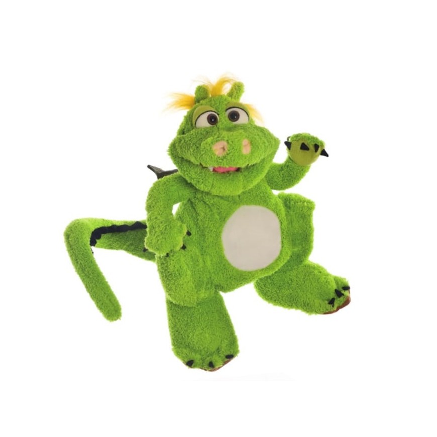 Le dragon le plus gentil de tous les temps. L’entrée des mains est en dessous, la gueule et la tête sont maniables. Taille 35 cm.