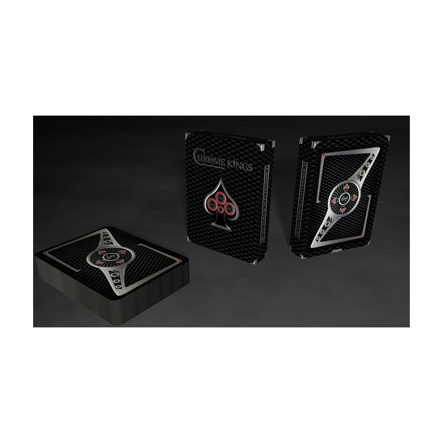 Le projet de cartes à jouer Chrome Kings est depuis longtemps un rêve de la légende souterraine des cartes à jouer De'vo vom Schattenreich. Expert, producteur et directeur artistique de renommée mondiale, De'vo a produit plus de 50 des meilleures cartes à jouer du monde. Les cartes à jouer de De'vo sont apparues à la télévision, notamment l'émission télévisée Super Humans de Stan Lee! Les cartes De'vo sont dans les maisons de célébrités et de superstars hollywoodiennes et sont utilisées par les magiciens, les joueurs de cartes et les artistes de cartes du monde entier. Certains de ses jeu se vendent en quelques minutes seulement après leur sortie. Il y a plusieurs années, De'vo a eu l'idée de créer un jeu complet de cartes à jouer dans des environnements 3D complets et a voulu le créer lui-même, sans l'aide d'autres artistes. De'vo a commencé le long voyage et finalement sa toute première œuvre d'art qui a propulsé sa carrière d'artiste de cartes à jouer. Chaque carte Court est son propre modèle 3D entièrement détaillé qui a été construit à partir de zéro, puis texturé, éclairé et photographié pour chaque carte.
