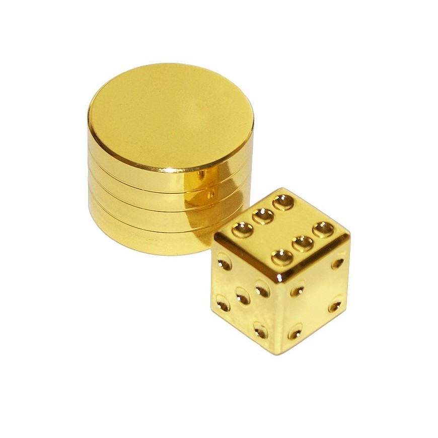 • L'article est en métal avec un placage d'or brillant. Le dé est un bloc solide.