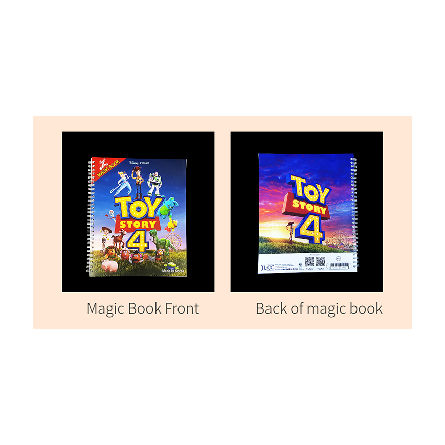 L'effet de livre a été amélioré pour inclure des images de Toy Story. Présentation du livre de coloriage magique (Toy Story 4).