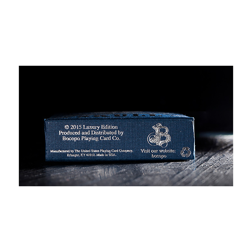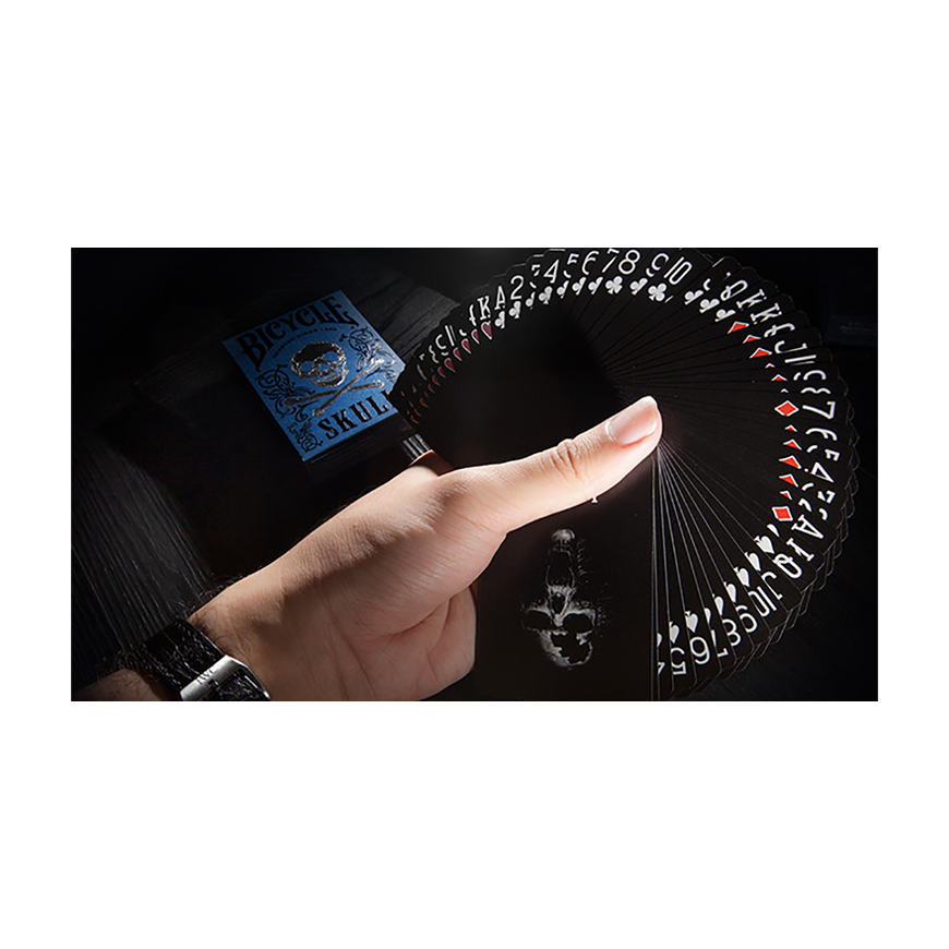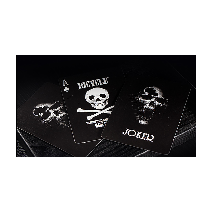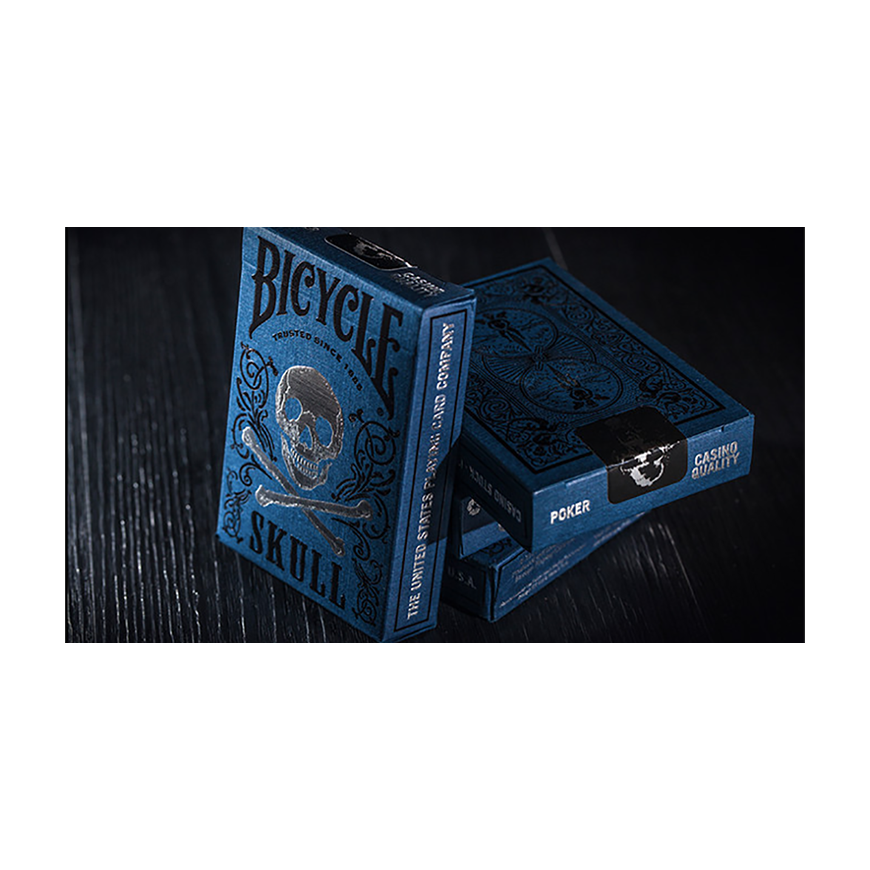 La boîte de carte d'édition limitée de crâne de luxe de bicyclette emploie le papier bleu de haute qualité de kraft, l'impression argentée de double couleur argentée de noir et l'utilisation de la technologie de gaufrage en acier. Bonne texture physique, une très belle collection de cartes. États-Unis Playing Card Company Classic vélo retour en noir. Imprimé sur du papier de qualité casino Bee.