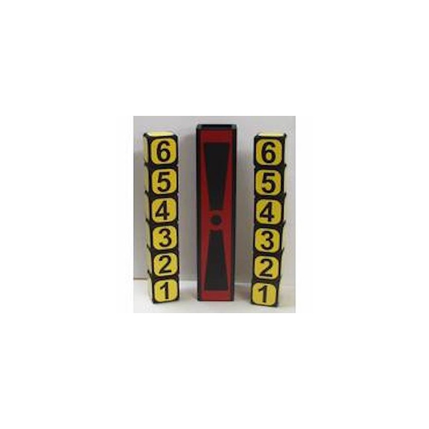 Devant vous se trouvent 2 piles de cubes. L’une est numérotée de 1 à 6 de haut en bas et l’autre est numérotée, en sens inverse, de 1 à 6 mais de bas en haut.