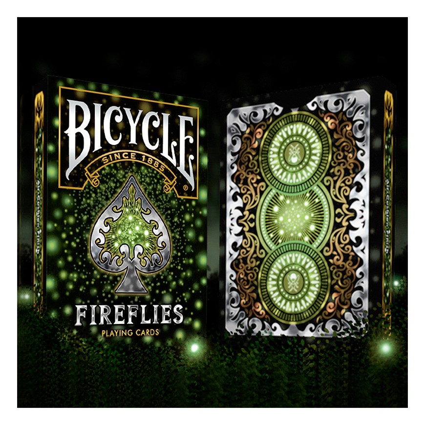 Il n'y a rien de plus spécial que de s'asseoir pendant une chaude nuit d'été et de regarder les champs de lucioles ... jusqu'à maintenant. Nous sommes ici pour vous apporter la magie de ces nuits d'été avec les Cartes à jouer Bicycle Fireflies de Cartes à collectionner. Ce design personnalisé se démarquera sûrement de votre collection en tant que favori instantané