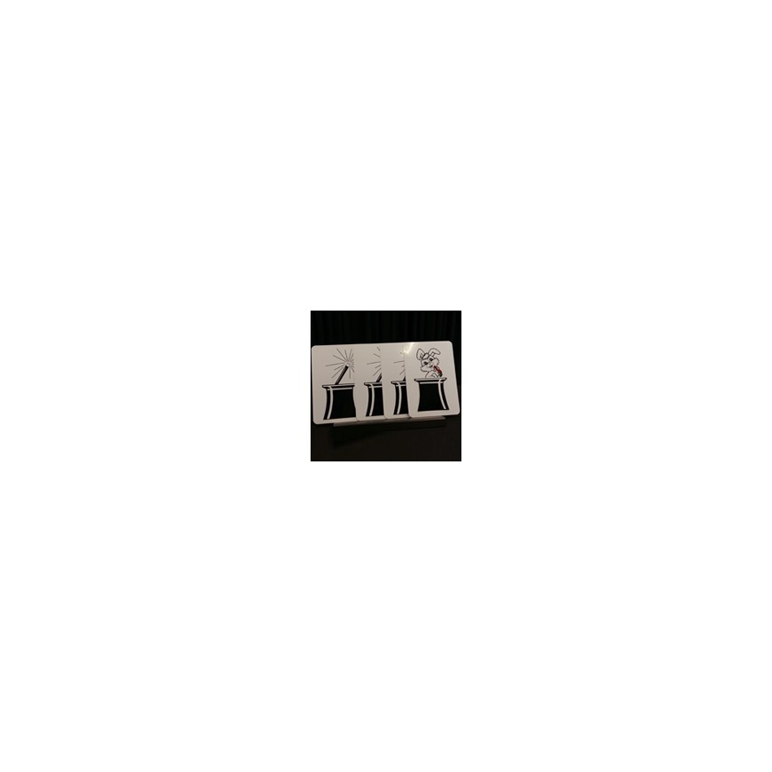 Vous présentez 4 grandes cartes. Les deux premières représentent un chapeau, la troisième un lapin et la quatrième un chapeau d où émerge une botte de carottes.