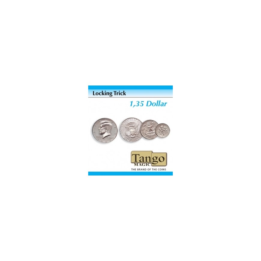 Le magicien montre quatre pièces, deux de demi-dollar, un quart de dollar et 10 cents. pièce de monnaie. J'ai mis un à un à l'intérieur de sa main gauche, puis j'ai enlevé une pièce d'un demi-dollar et ouvre la main aux autres pièces qui ont disparu.