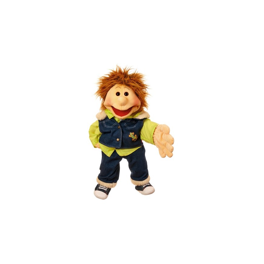 Un garçon déluré qui porte une veste avec un col en fourrure synthétique et des baskets cool. Les vêtements s’enlèvent complètement.